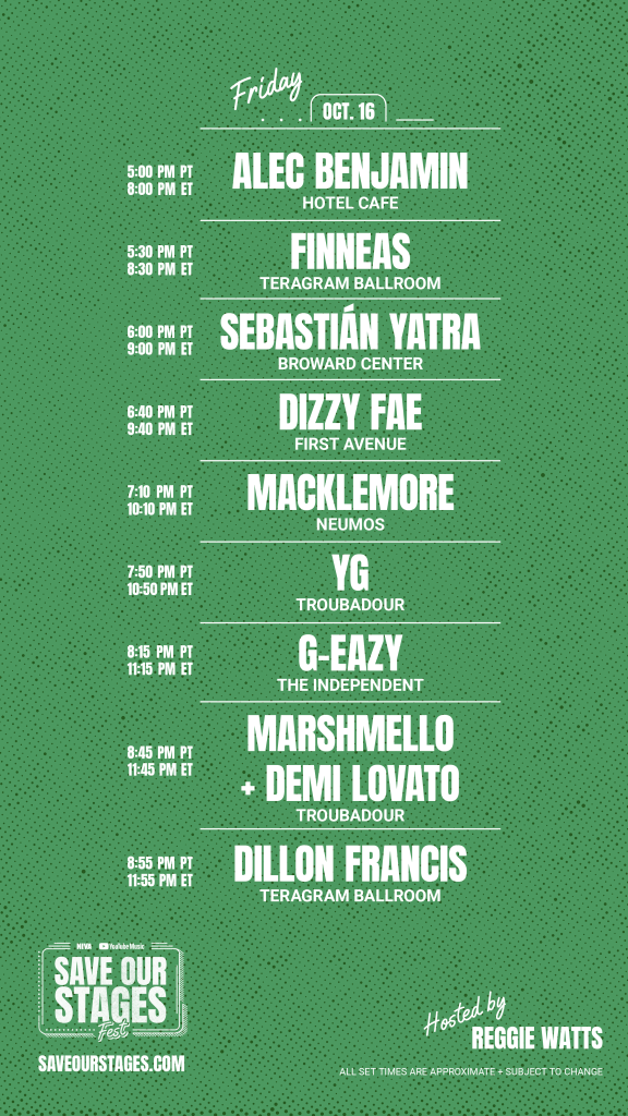#SOSFEST is a three-day virtual music festival featuring exclusive original performances and content, streaming October 16 -18. Hosted by Reggie Watts, #SOSFEST features performances from 35+ artists, including an intimate set from Foo Fighters, and performances by Leon Bridges, Nathaniel Rateliff, Black Pumas, Miley Cyrus, Kelsea Ballerini, and more, recorded live from more than 25 independent concert venues across the United States.